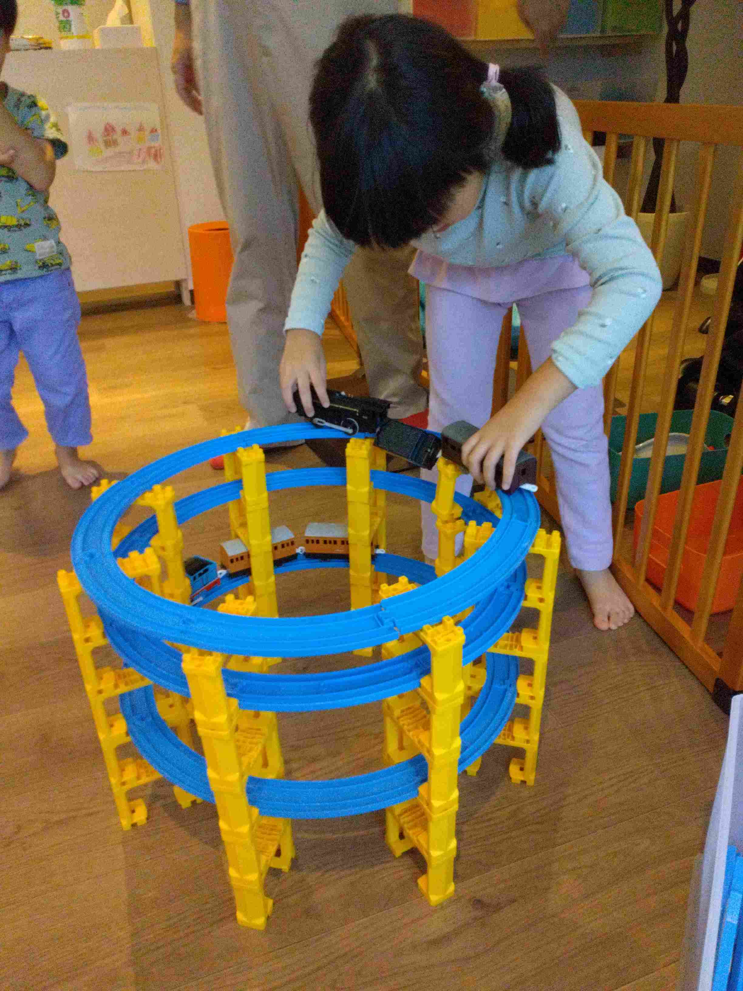 この写真のお友だちは、三階建ての線路を作ったようです。