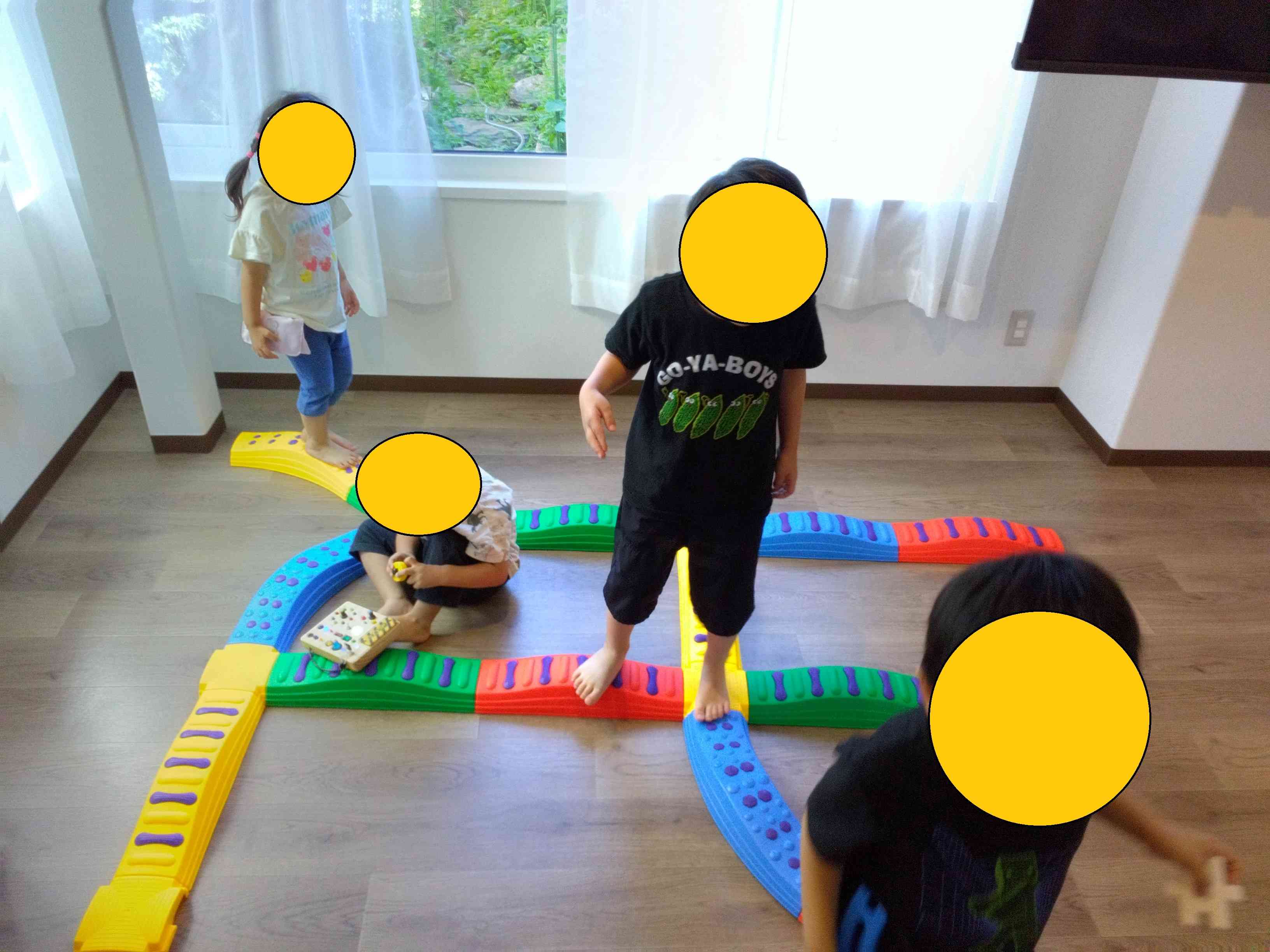 平均台を渡る際は、落ちないように集中力が必要になります😊