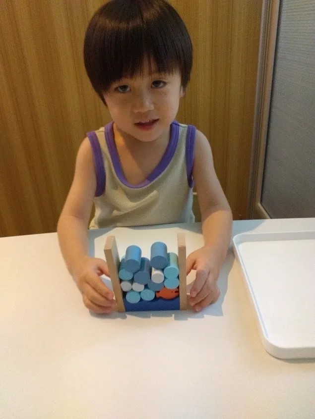お魚の積み木を落とさないように、丸い積み木をジェンガのようにとっていくものです✨